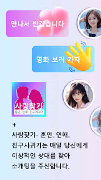 Encontrando o Amor - Casamento. Namoro. Fazer Amigos é um aplicativo gratuito para Android, que faz parte da categoria 'Social & Comunicação'.Sobre 사랑찾기- 혼인. 연애. 친구사귀기 para Android